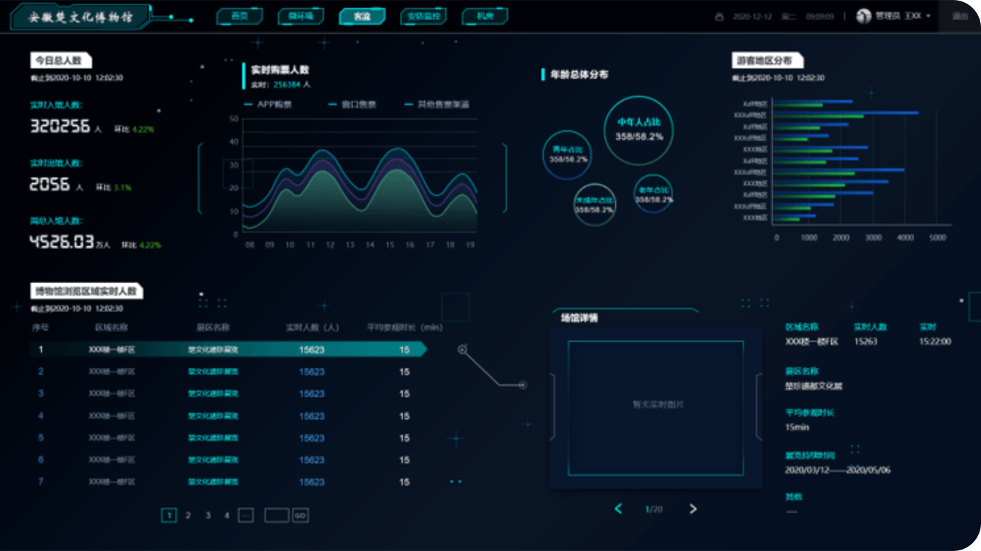 可对观众的年龄、性别、学历、职业、地域、行为、出游动机、消费方式、交通工具等进行分析,并能运用大数据技术开展口碑、文创、商户、关注度、曝光度、搜索热度等的监测分析。