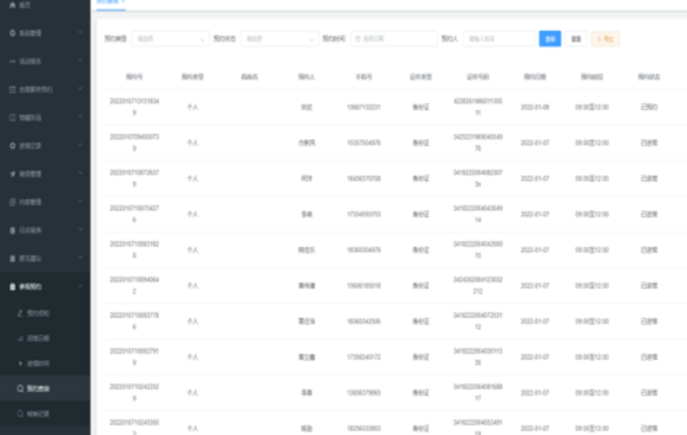 预约明细,进馆数分析,提前做好安保工作